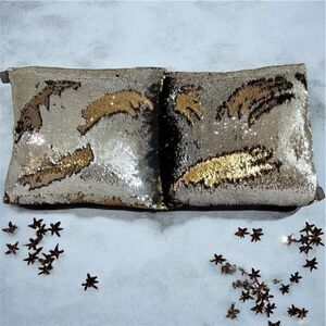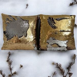 The sequins flip from silver to gold thus creating your own design in different metallic patterns. Perfect focal point on your bed, sofa, or chair. So many possibilities. Statement piece. Perfect for the holidays or year-round.