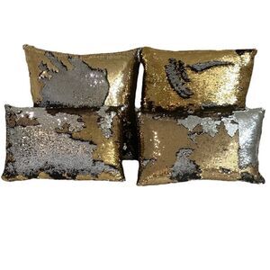 NEW Lot of Four (4) Aviva Stanoff Mermaid Sequin Gold/Silver/Black Luxury Pillows. Perfect for a bed or couch.