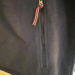 NWOT NFL New England Patriots Full Zip Fleece Sweater Men Size XL Blue. Red/white/blue horizontal stripe along back. Embroidered logo. Zipper pockets. Striped collar. NFL branded.