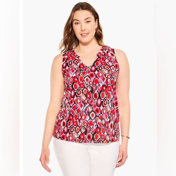 NWOT NIC+ZOE Geo Pane Tank Top Womens Plus 1X Red Multi