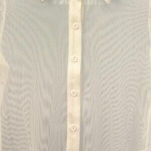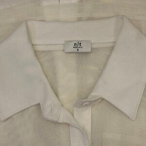(NWOT) NLT Collared Mesh Sheer Button-Down Long Sleeve Blouse (White)