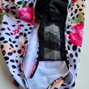 NWOT NOON SWIM Women's Ruched Halter 1 Piece Swimming Suit Leopard Floral Sz 18 Sw2