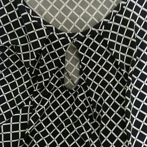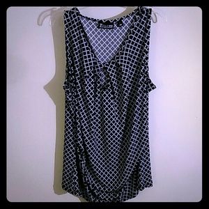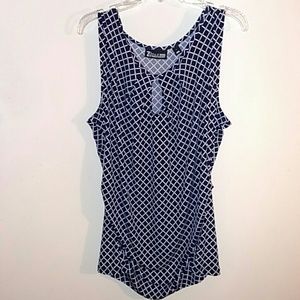 NWOT NY & Co. Navy and white keyhole ruched top. Pleated at neckline for a flattering look and ruched at sides, as shown in photos. 95% polyester and 5% spandex, so lots of give to this material.