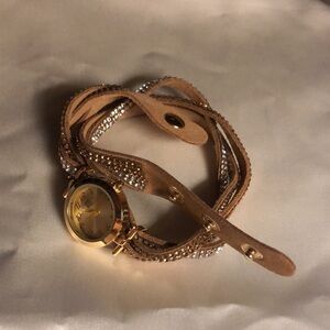 NWOT NY & Co crystal embellished wrap watch in faux leather. Goldtone face