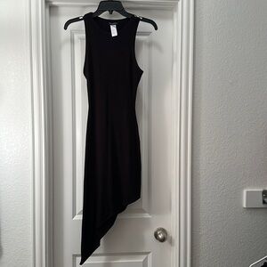 NWOT Naked Wardrobe Knot Right now ribbed Asymmetrical dress // Size Medium•LBD