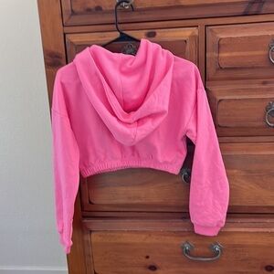 NWOT Naked Wardrobe Pink Cropped Hoodie, Size Small.
