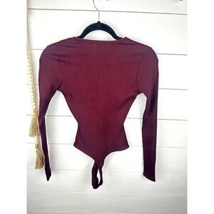 NWOT Naked Wardrobe Ribbed Deep V-Neck Long-Sleeve Bodysuit