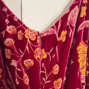 NWOT Nanette Lepore Dark Red/Yellow Burnout Floral Midi Pant Jumpsuit Vintage