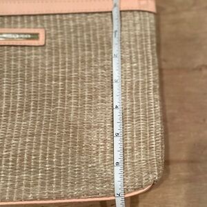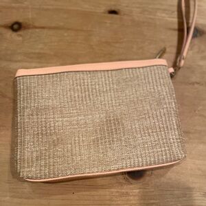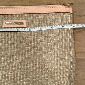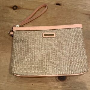 NWOT Nanette Lepore woven brown peach clutch accessory bag gold accents OS