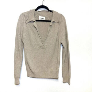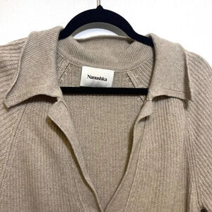 NWOT Nanushka Bambi Beige Wool Polo Sweater - Wool Cashmere Blend V-Neck