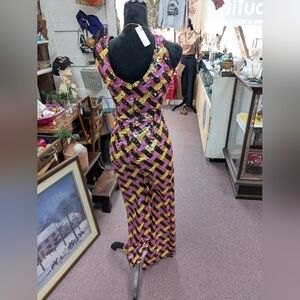 Eye-catching sequin jumpsuit with bold colors. Perfect for standout style.