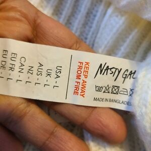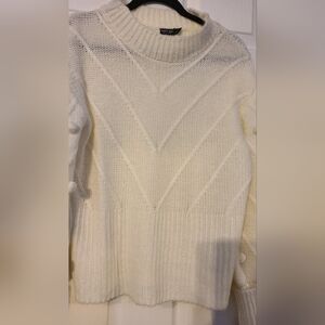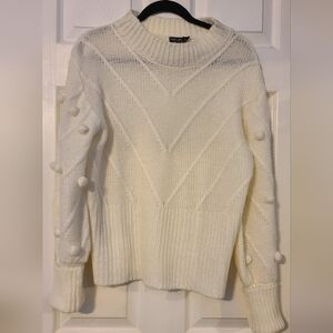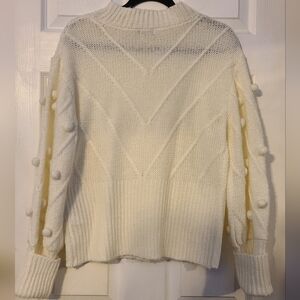 NWOT Nasty Gal lvory Pom Pom BalloonSleeve Mock Neck Sweater Size large