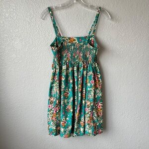* Features: NWOT- floral mini dress with fitted smocked top back panel, adjustable straps and side seam hand pockets.