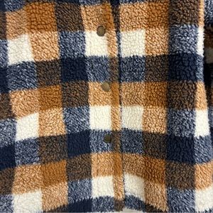 NWOT Natural Reflections Navy/Burnt Orange Plaid Teddy Boxy Shacket Coat