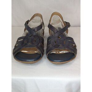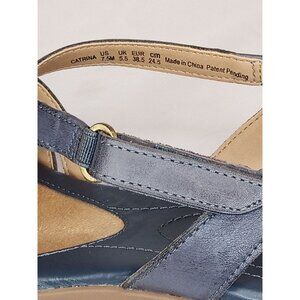 • NWOT Naturalizer Catrina Spring Denim Blue Strappy Sandals Velcro Buckle Open Toe Cushioned heel comes in Original Box Heel wedge 1in wedge