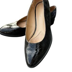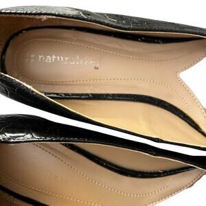 Naturalizer women’s size 8.5 Black, closed toe, Bengol loafer, with crocodile print design.