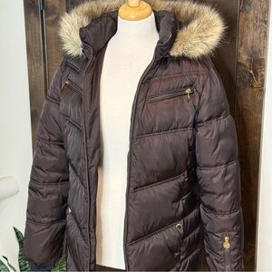 NWOT Nautica Brown winter Jacket with Faux Fur Hood and Quilted Design