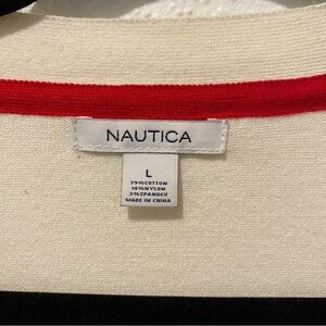NWOT Nautica Cream & Blue Striped Sweater Sz. Large. Beautiful sweater that can be worn up or down. No flaws noted.
