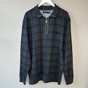 NWOT Nautica Quarter Zip Grey Plaid Fleece Lined Long Sleeve Sweatshirt Size XXL