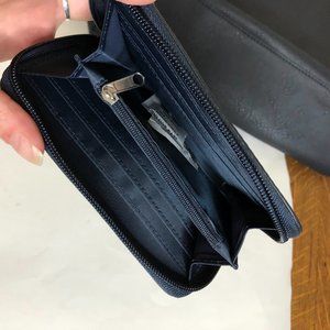 NWOT! Navy Blue & Brown Faux Leather Tote Bag w/ Matching Wallet