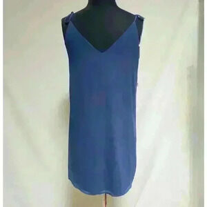 NWOT Navy Blue Naked Zebra S Slip Dress Spaghetti Strap Ties Front Button Detail