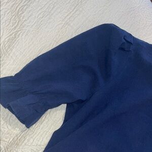 Unknown maker. No tag/NWOT. Shift style dress with ruffle slight high/low hem and beautiful details on puff sleeves. 100% cotton. Hits at knee to just below knee and slightly hi-lo hem. Classic cut and lightweight for warm weather events so you can enjoy comfort and style.
