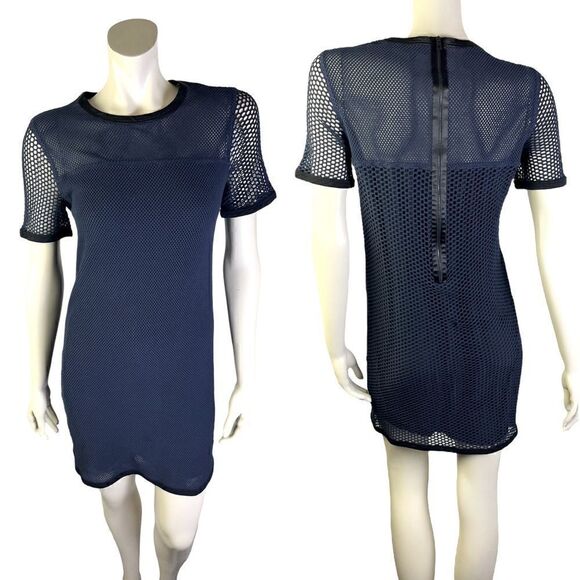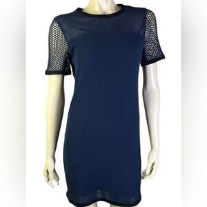 NWOT Navy Rag & Bone S/S Mesh Panel Sheath Knee Length Lined & Trimmed in Silk M
