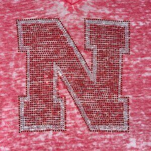 Husker Red, large Bling / Rhinestone "N", V-neck