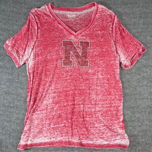 NWOT Nebraska Cornhuskers Women's Bling Short Sleeve Burnout Shirt Top 1X Red
