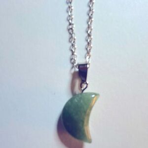 NWOT Necklace Crescent Moon Aventurine stone green 1”, hypoall silver 16” chain