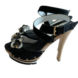 NWOT Nelly Venturi Womens Suede Heel Sandals Buckle Strap Size 6.5US Black