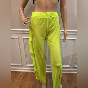 Stand out with these vibrant neon yellow ruffle pants. Perfect for adding a pop of color to your wardrobe.
