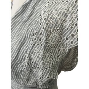 NWOT Neuflora Wrap Ruffle Maxi Dress •M• Striped Eyelet Flutter Sleeve