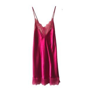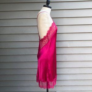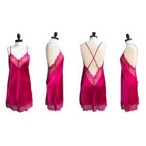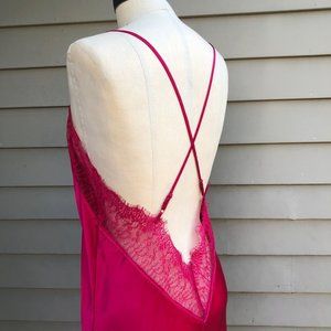 NWOT New 100% Silk Pink Red Lace Criss Cross Chemise Negligee Full Slip Dress M