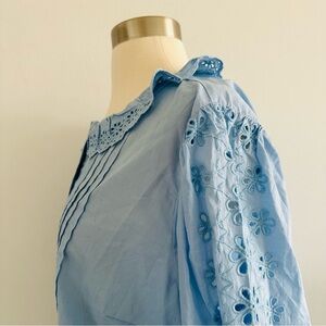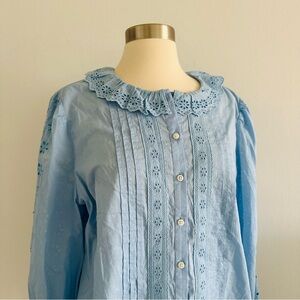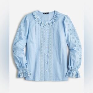 NWOT New J.Crew Eyelet Trim Button Up Shirt Frozen Lake Color L
