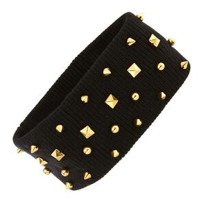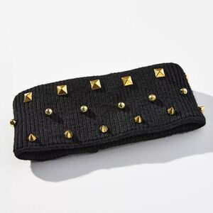 NWOT New LELE SADOUGHI JET BLACK 14K GOLD-PLATED STUDDED EAR WARMER/HEADBAND OS