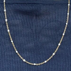 NWOT! New Slide Jewelry Gold Necklace with Small Pearl Like White Beads Everyday