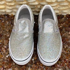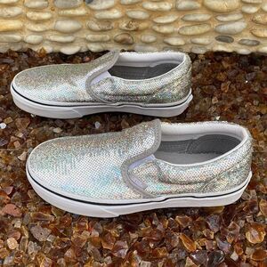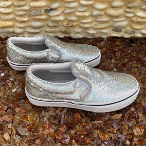 NWOT New Vans Classic Kids Slip-On Silver Glitter Sneaker Size 3.0. Holidays