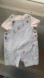 Adorable light blue baby overalls with nautical print. Features cute anchors and dogs. Comes with a white onesie. Both overalls and onesie are snap close.
