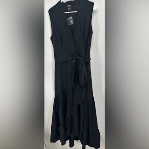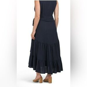 NWOT Nicole Miller Black Linen Blend Tiered Lagenlook Maxi Dress Sz small
