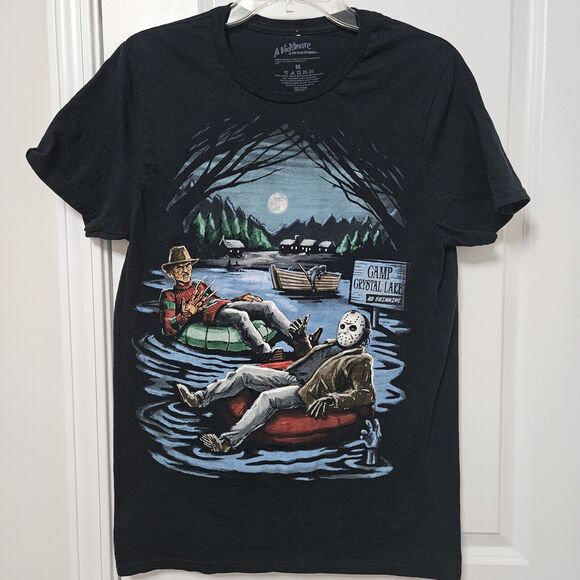 NWOT Nightmare On Elm Street T-Shirt Men's Medium Black Freddy and Jason Graphic