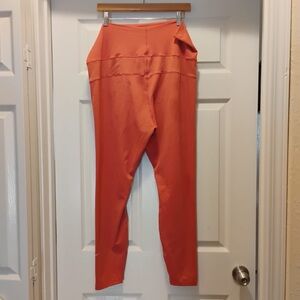 These are new, except I tore the tags off before I tried them on and they ended up being too big. These are high-waisted leggings from Nike's Dri-FIT line, designed to keep you comfortable and dry during workouts. The vibrant salmon pink color adds a pop of color to your athletic wardrobe.