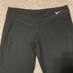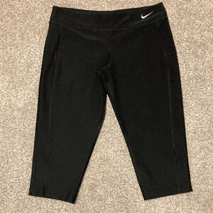 NWOT Nike Dri-Fit black capri in size L. 88% polyester and 12% spandex. Please see photos for approximate measurements laying flat and details. Excellent new condition from smoke free and pet free home.