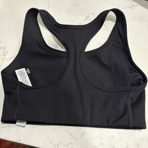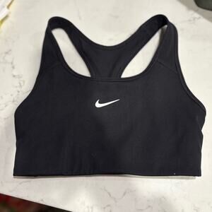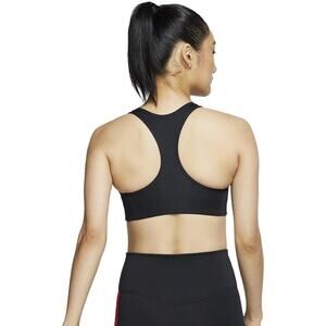 This Nike 'Swoosh' sports bra in classic black offers medium support with its wide bottom band, making it ideal for various athletic activities, such as running, tennis, HIIT.