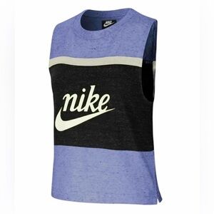 This women's Nike varsity crop muscle style tank gives you the classic comfort of cotton in a lilac purple & black bold-color block design for an eye-catching, sporty style.