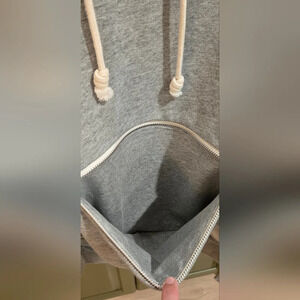 size small grey Nike Dri-fit hoodie sweatershirt with 2 pocket front. one is zippered. front is slightly shorter than the back for cute look.