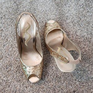 NWOT Nina Gold Glitter Sling Back Heels SZ 6 1/2