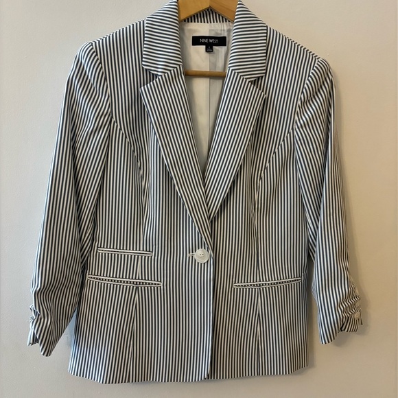 NWOT Nine West Pinstriped Seersucker Cotton Blend Blazer