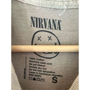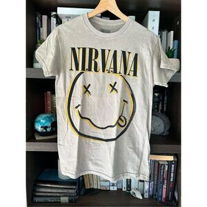 🐿️ NWOT Nirvana Acid Wash Tan Gray Smiley Graphic Unisex Short Sleeve Tee Small