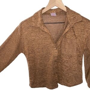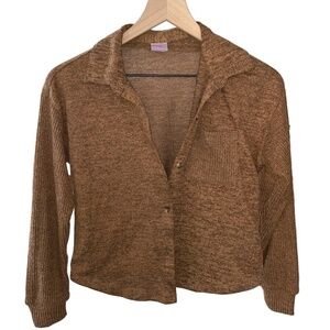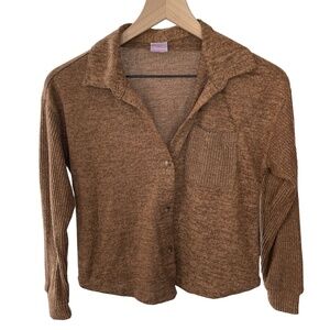 NWOT No Boundaries Cropped Knit Button Down Cardigan Sweater Pocket Soft Brown